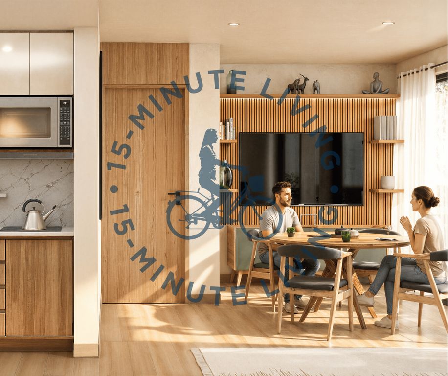 Aquí se vive 15-Minute Living: lo esencial a 15 minutos o menos (movilidad, servicios, comercio y espacios para tu rutina), para moverte fácil y aprovechar mejor tu tiempo.