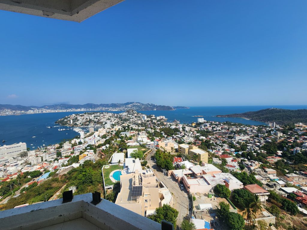 Impresionante e imponente torre condominal ubicada en el Fracc Las Playas, en la cima de una colina desde donde se domina completmente de manera espectacular la bahia de Acapulco, la Isla de La Roqueta, el oceáno Pacífico y la zona de Pie de la Cuesta,La Torre desplantada sobre 5000 m2 de terreno, siendo cabeza de manzana, con 3 frentes sobre calle, lo q le proporciona una privacidad absoluta. El Condominio desarrollado con 15 pisos, con 2 departamentos por piso, con amplísimo área de estacionamiento, con caseta de seguridad y control de acceso, un lobby con bonitas y espaciosas terrazas y 2 elevadores, el área de alberca con terrazas-asoleaderos y sanitarios .
