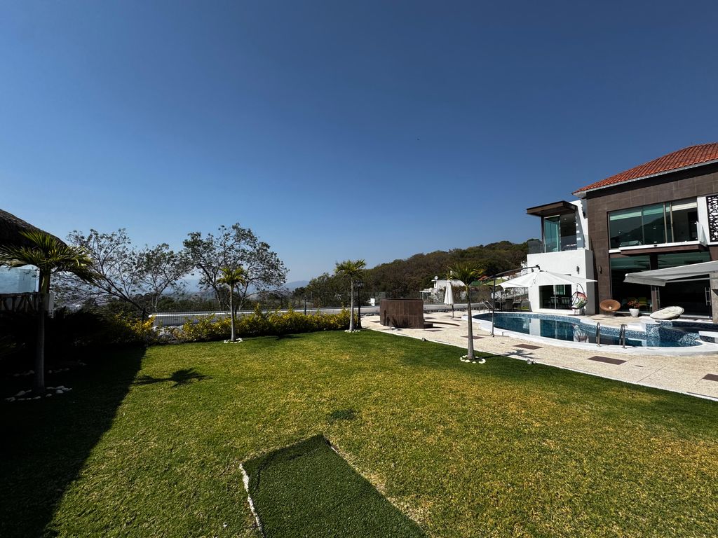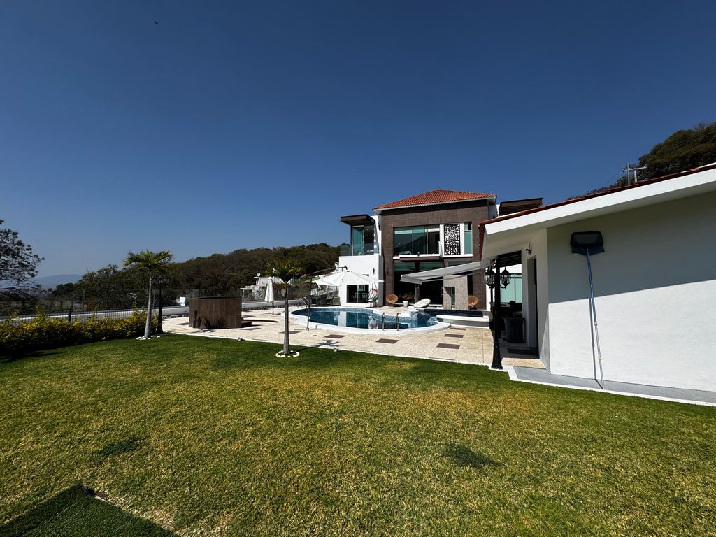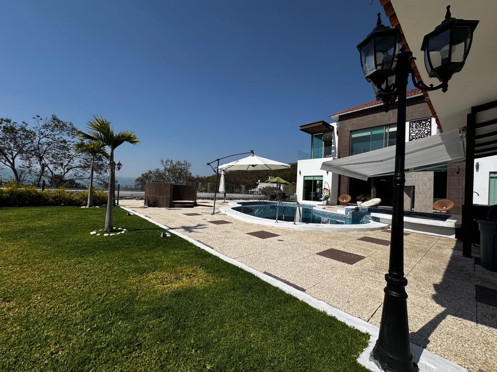 * Interiores: Sala con doble altura y chimenea, 5 recámaras (cada una con baño, 3 con vestidor y terraza), sala de TV y cocina con vista a la alberca.
