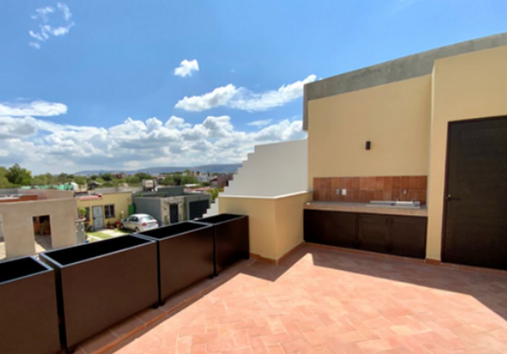 Oportunidad de inversión Casa en San Miguel de Allende cerca de Aguas Termales. 2 recámaras, 1.5 baños, 2 pisos. Ubicada en el corredor Dorado en el fraccionamiento La Vista, un conjunto de casas con áreas verdes y juegos para niños. Cerca de aguas termales, a 8 minutos de San Miguel, cerca de Atotonilco. Remodelada, espacios amplios con luz natural, terraza en planta baja y estudio. Roof con asador, terraza y cuarto de lavado.