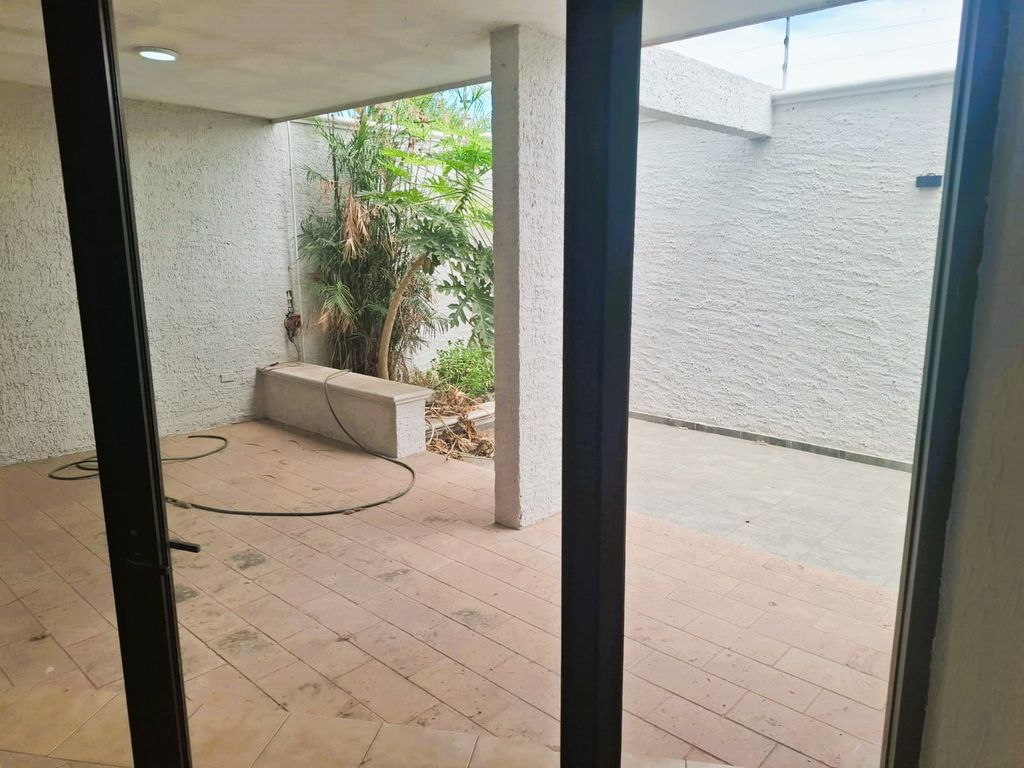 Cochera para 2 autos, estancia, área de sala, área de comedor con vista y acceso a la terraza trasera semi techada, cocina integral, patio, medio baño, área de almacenaje debajo de la escalera.