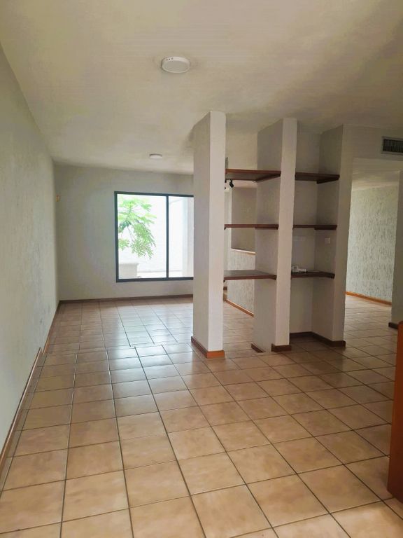 Área de estar (se puede adaptar como área de trabajo o sala de TV, 3 habitaciones (la principal con baño), las habitaciones secundarias comparten 1 baño completo independiente.