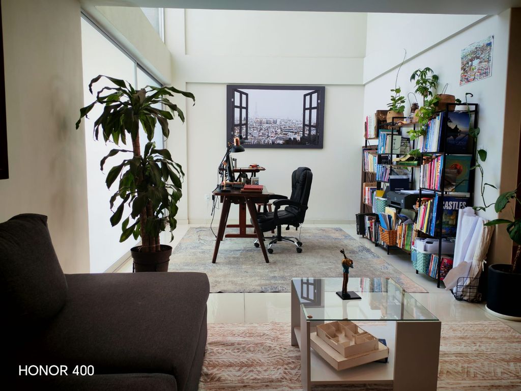 • Estudio con doble altura y balcón hacia la calle — ideal como home office, biblioteca o cuarto flex