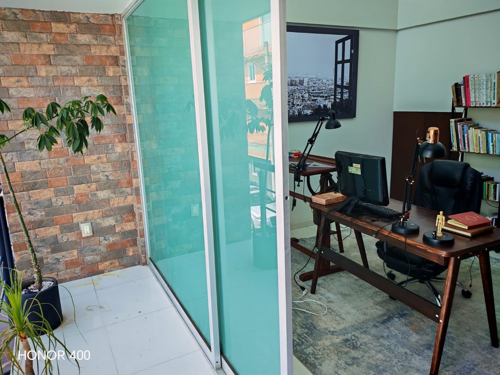• 3 balcones: en el estudio (calle), en el comedor (vista al patio) y en la recámara principal