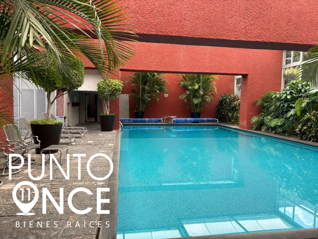 * Alberca con terraza y camastros