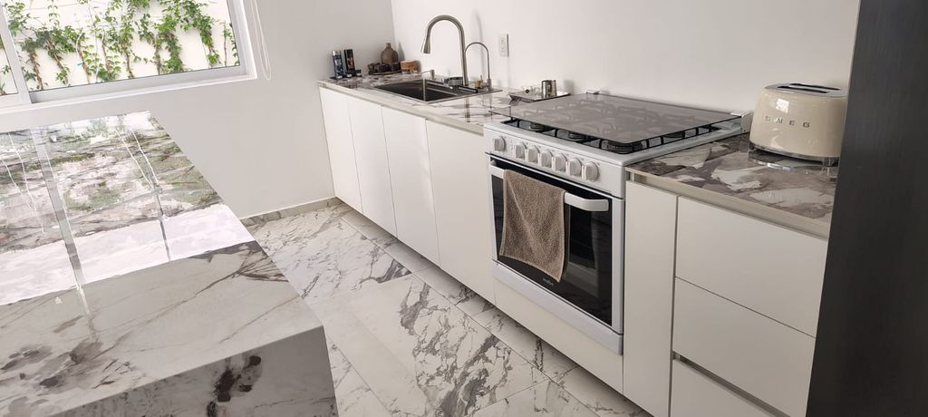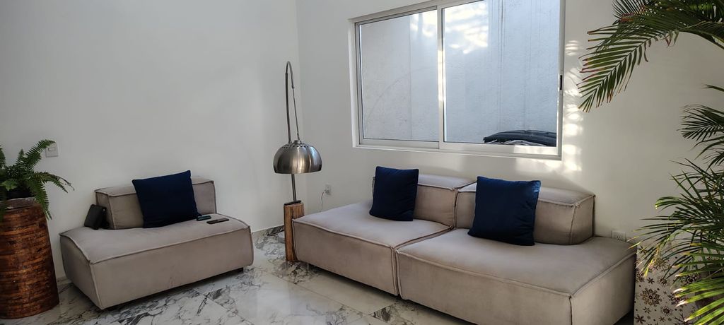 Espaciosa casa con acabados premium, amplios espacios y doble altura.3 recámaras con baño, roof garden, cuarto para tv, estudio en PB y baño completo, jardín, cocina equipada, cochera, área de lavado, bodega. 5 baños completos en total, amplia e iluminada, doble altura.