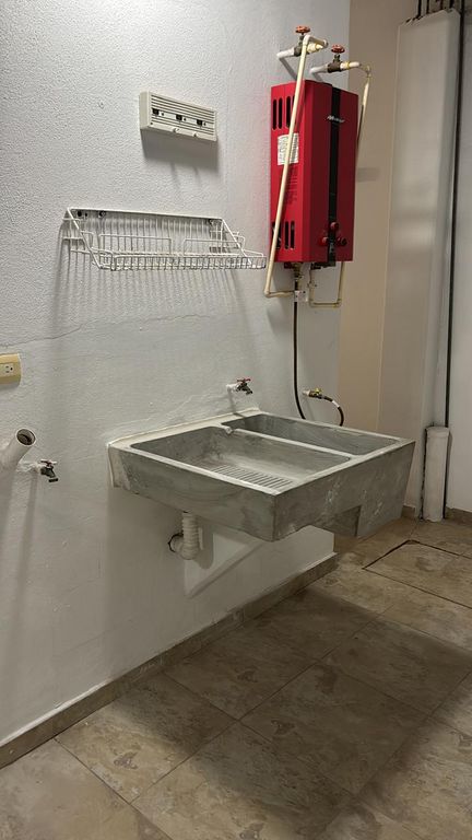 Cochera cerrada para 1 auto (portón), pasillo lateral hacia el patio, área de sala-comedor, cocina integral, medio baño, patio trasero con lavadero y boiler.