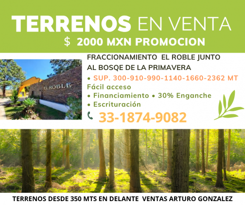 TERRENOS EN VENTA FRACIONAMIENTO EL ROBLE