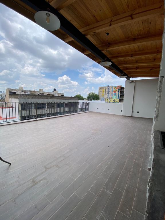 Tu nuevo hogar te espera en este departamento de 38.36 m2, con 1 recámara y 1 baño. Imagina tus fines de semana con parrilladas en el asador o relajándote en el roof garden, todo con la tranquilidad del circuito cerrado. La cocina integral, equipada y con calentador de agua, hace el día a día más sencillo. Además, cuentas con un espacio de estudio y un patio de lavado independiente. Los acabados de lujo le dan ese toque especial que buscas.