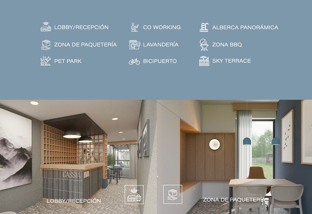 Vive rodeado de amenidades premium: alberca panorámica, coworking, sky terrace, zona BBQ, pet park, lavandería, bicipuerto y un elegante lobby con recepción.