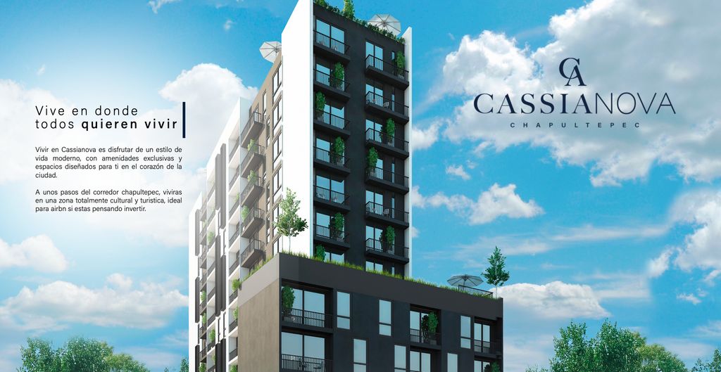 Cassianova es un desarrollo vertical de 13 niveles y 102 departamentos que redefine el estilo de vida urbano, a solo minutos del corredor Chapultepec, la zona más cultural y gastronómica de Guadalajara.