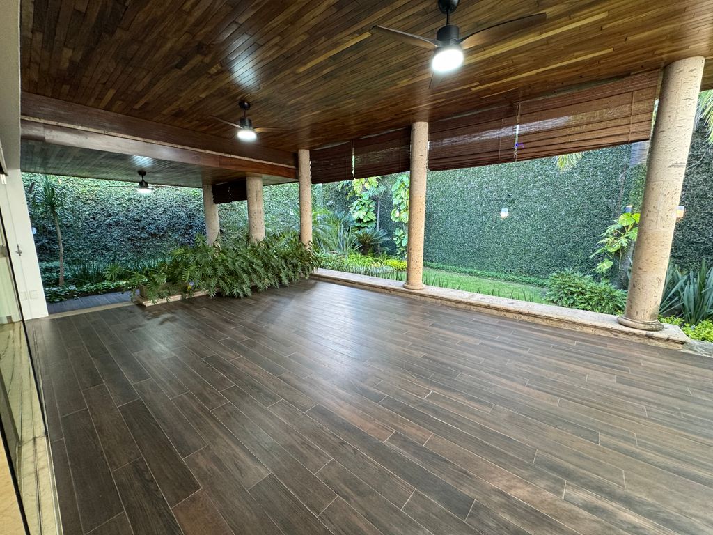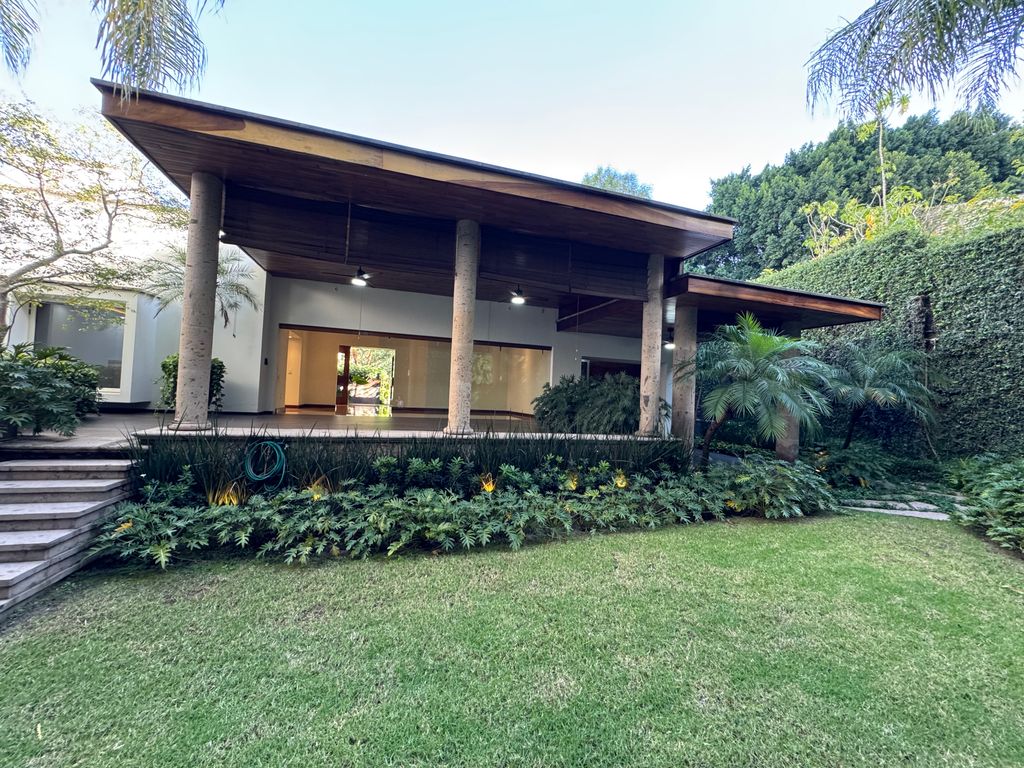 Esta propiedad cuenta con 1060 metros cuadrados de superficie con un amplio frente de 40 metros que permite disfrutar de la amplitud con que goza esta residencia. En una planta con desniveles se encuentran las 3 recámaras con la que cuenta esta residencia, con posibilidad de una cuarta recámara en lugar del estudio ya que todas cuentan con su baño completo; tiene una amplia cocina iluminada, su comedor como área privada y una amplia sala con incorporación a la terraza y área de jardín; mismo que fue diseñado con un bello Paisajismo.