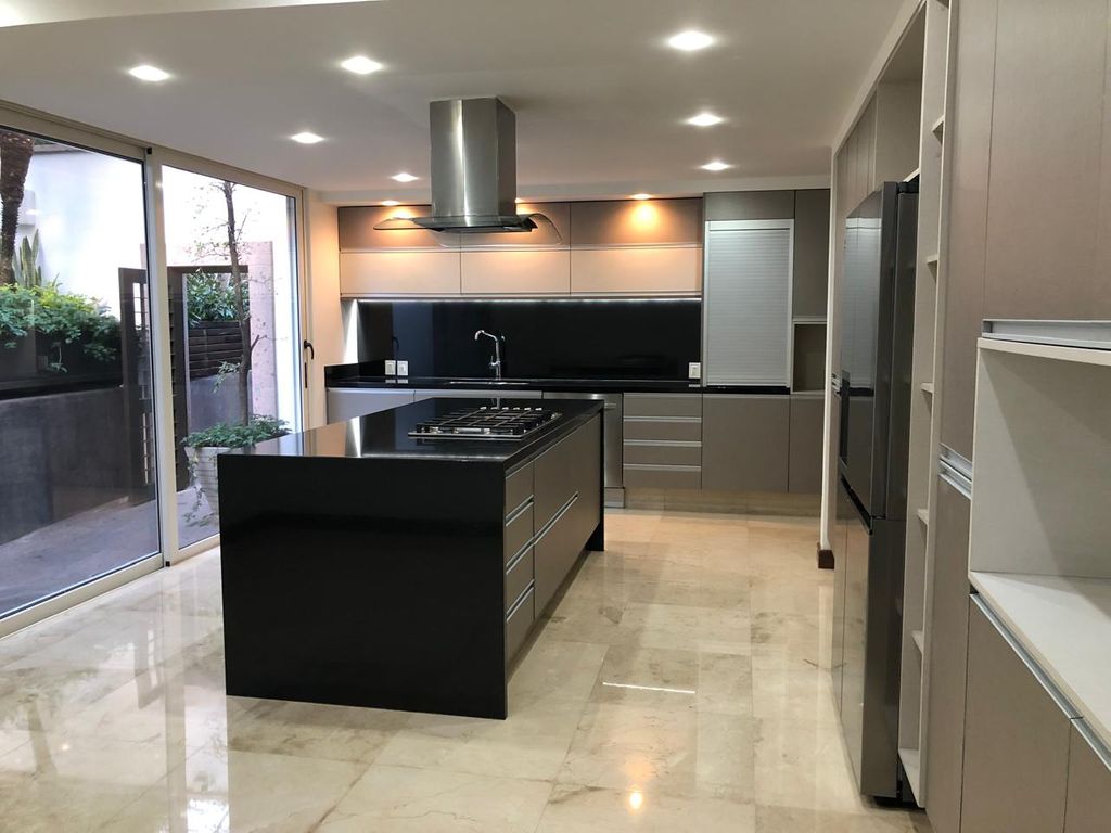 - Recámara principal con walking clóset, baño con doble lavabo de mármol, sala de TV y acceso al jardín