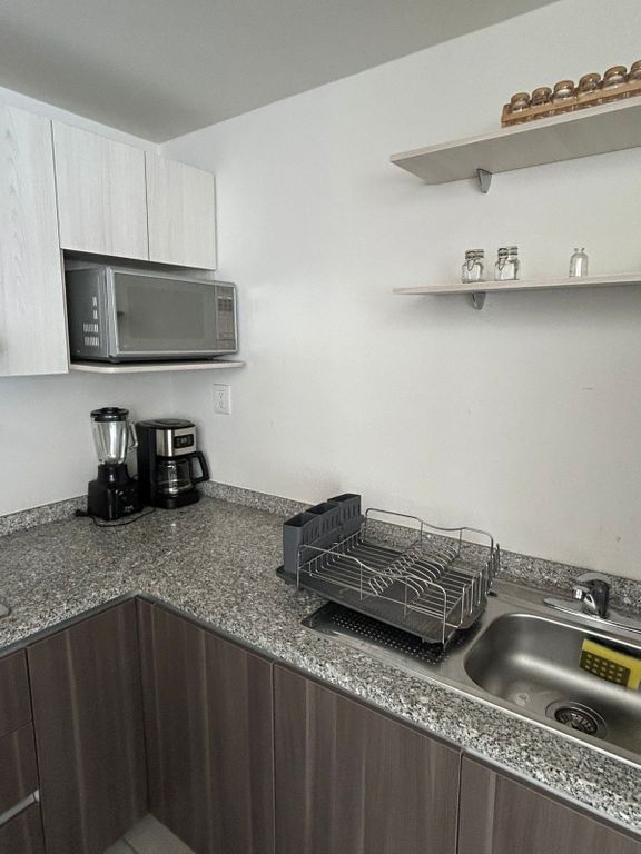 •? ?Cocina integral equipada con refrigerador, estufa, utensilios y electrodomésticos