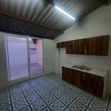 Casa pequeña, consta comedor con cocina integral, patio de