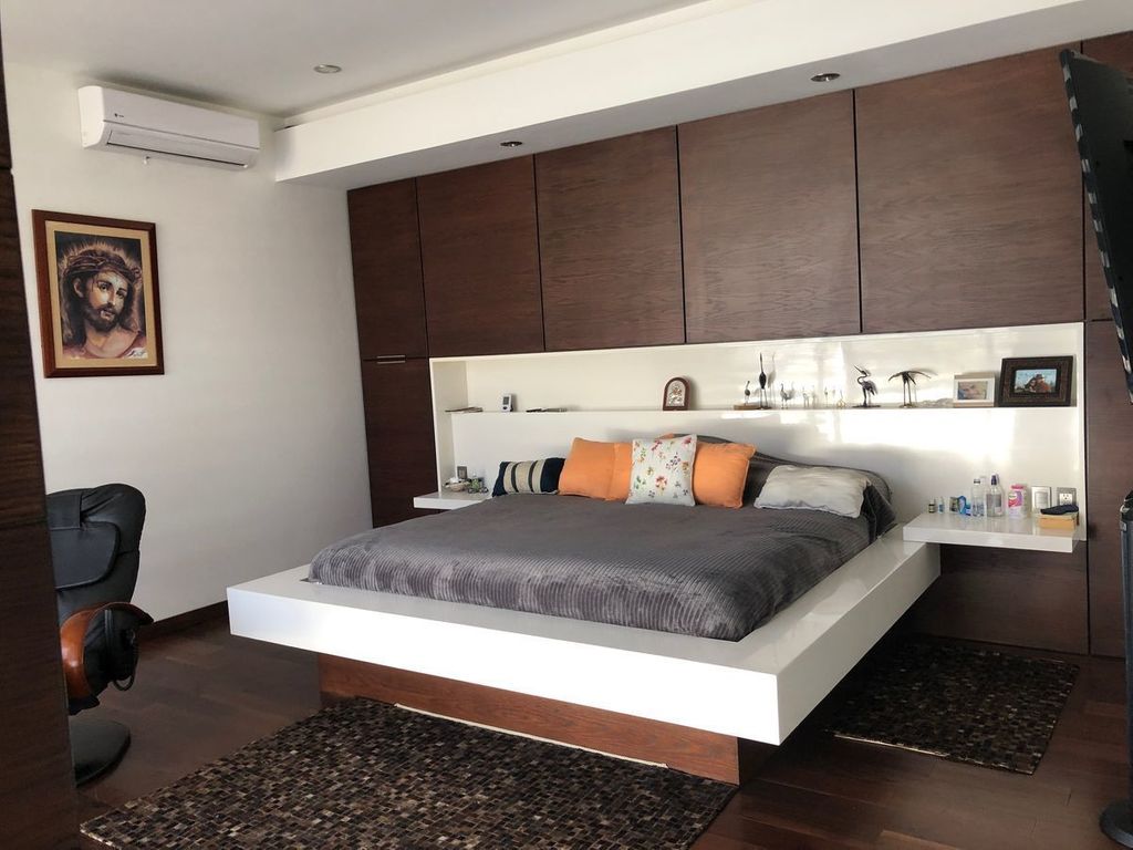 Hermoso diseño arquitectónico cuenta con dos recamaras arriba y un area de tv que se puede hacer recamara, un estudio en planta baja con baño y cuarto de servicio ,sótano en cochera además tiene alberca climatizada jardin amplio dentro de coto con vigilancia 24 horas, casa club y áreasEn renta con muebles o sin muebles incluye el mantenimiento verdes, te invito a conocerla