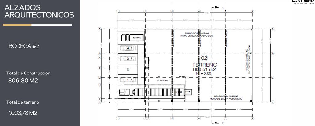 1 andén para tráiler o rabón y rampa de acceso con cortina mecánica (altura 4.5 m)