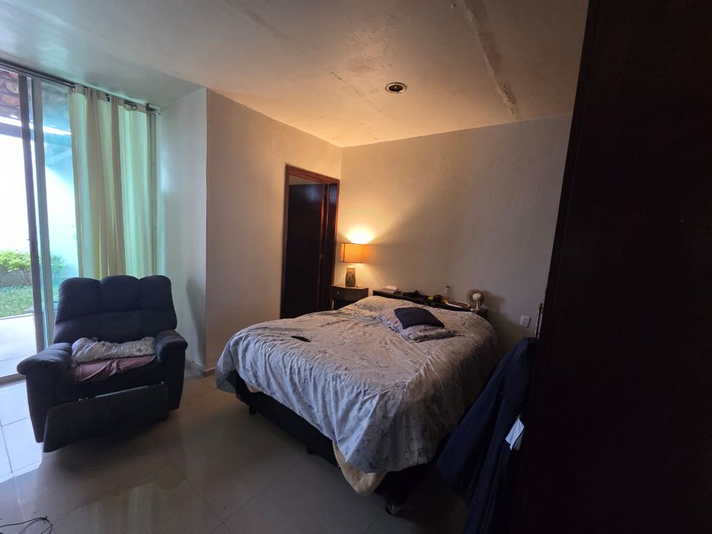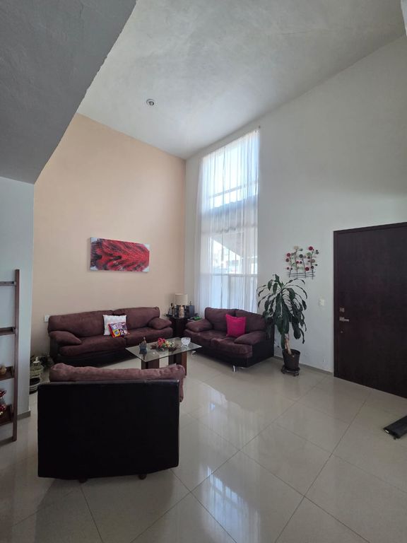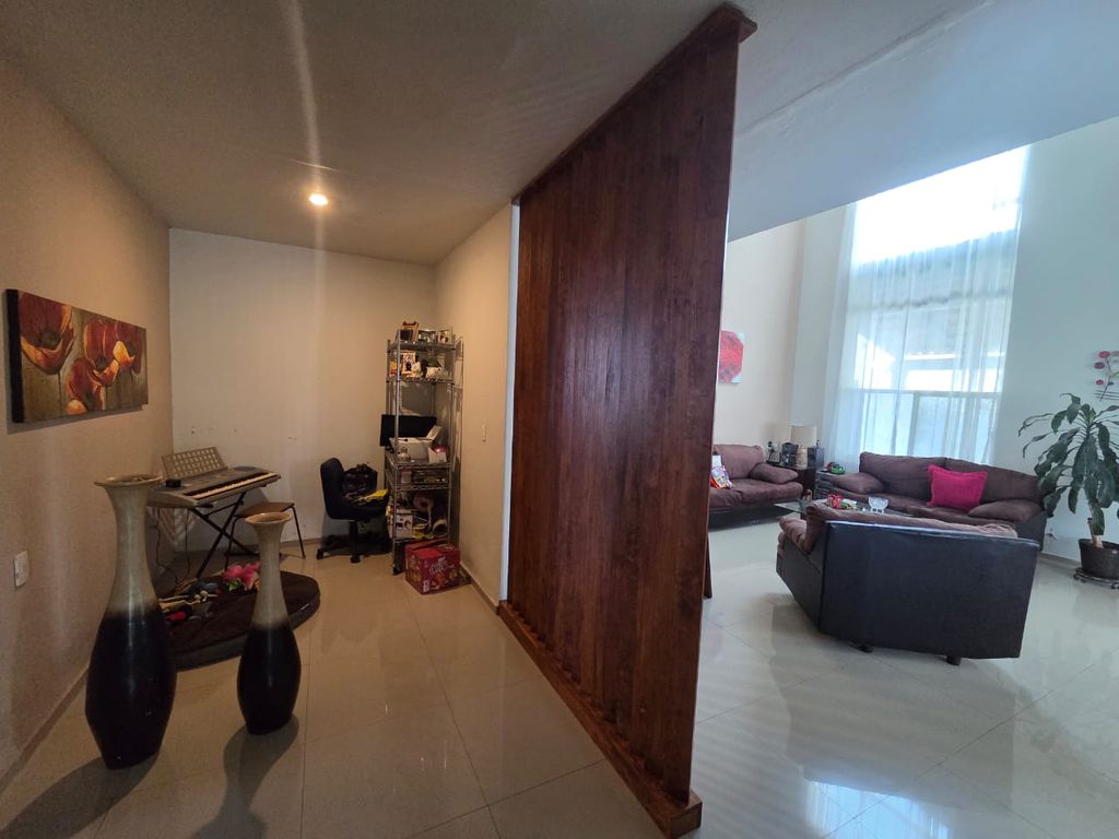 3 Recámaras con baño completo, sala a doble altura, cocina y comedor en de espacios amplios y abiertos, medio baño, área de estudio, terraza y jardin, servidumbre lateral y cochera techada para dos autos techados.