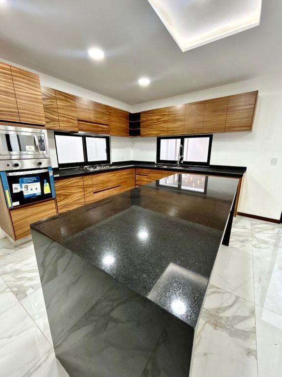 Cocina integral en parota super equipada con isla de granito