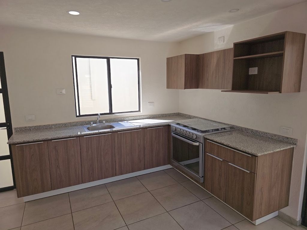 Planta baja: Un estacionamiento, sala/comedor, baño de visitas, cocina integral, patio trasero con área de lavado techada.