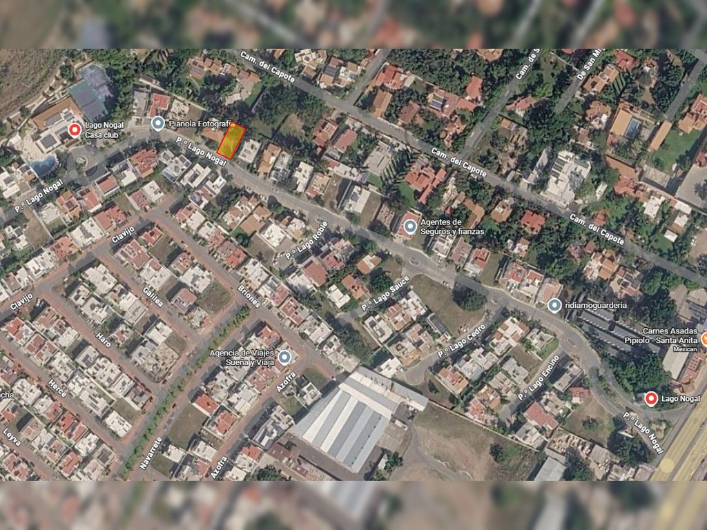 Terreno residencial en venta en el condominio "Lago Nogal", ubicado en Av. López Mateos Sur, justo frente al centro comercial Punto Sur, a unos metros de Costco, restaurantes, hospital, escuelas, etc.El terreno tiene un frente de 16.77 metros y un fondo de 27.83 metros, con una superficie total de 421.73 m2. Se encuentra sobre la avenida principal del condominio y en la parte de atrás colinda con el jardín posterior de una residencia del coto vecino.