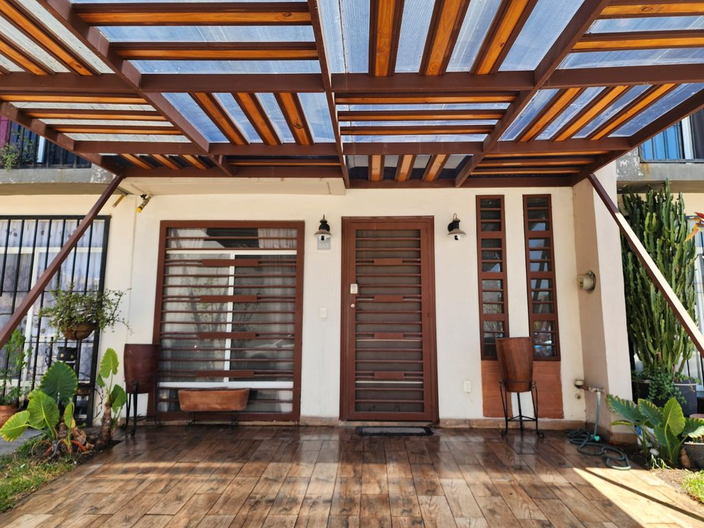 Se vende hermosa casa en Belcanto de 2 recamaras, la tercera que estaba en planta baja se hizo estudio pero se puede volver a hacer recamaraEsta casa se distingue por los acabados y el equipamiento ya que cuenta con una hermosa cocina con tarja grande, aire acondicionado en la recamara principal, tinaco, tanque estacionario, calentador solar y boiler, patio techado y pérgola en la cochera para los autos.