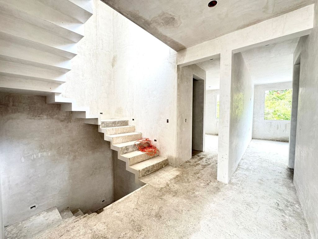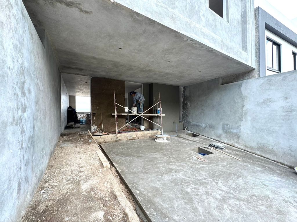 • Planta Baja: Cochera para 2 autos con cancel, espacio de sala y comedor muy amplios con vista panoramica, cocina con isla con desayunadora, equipada con torre de hornos, parrilla y campana, patio-jardín posterior y medio baño.