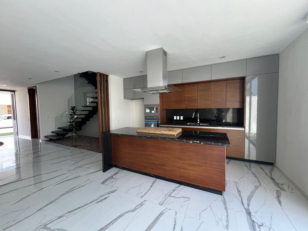 ¡Tu nuevo hogar te espera! Esta impresionante casa en renta te ofrece 3 recámaras y un estudio que puede ser la cuarta recámara. Ademas 3 baños, uno de los cuales está en la planta baja. La casa tiene 190 m² de construcción sobre un terreno de 140 m². Cuenta con 2 cajones de estacionamiento y espacio para visitantes.Destaca por sus acabados de lujo, como cubiertas de mármol en cocina y baños, y pisos de gran formato con un diseño elegante. La cocina integral está equipada y lista para tus creaciones culinarias. Disfruta de un diseño moderno con escaleras flotantes y amplios ventanales que inundan de luz natural cada espacio.