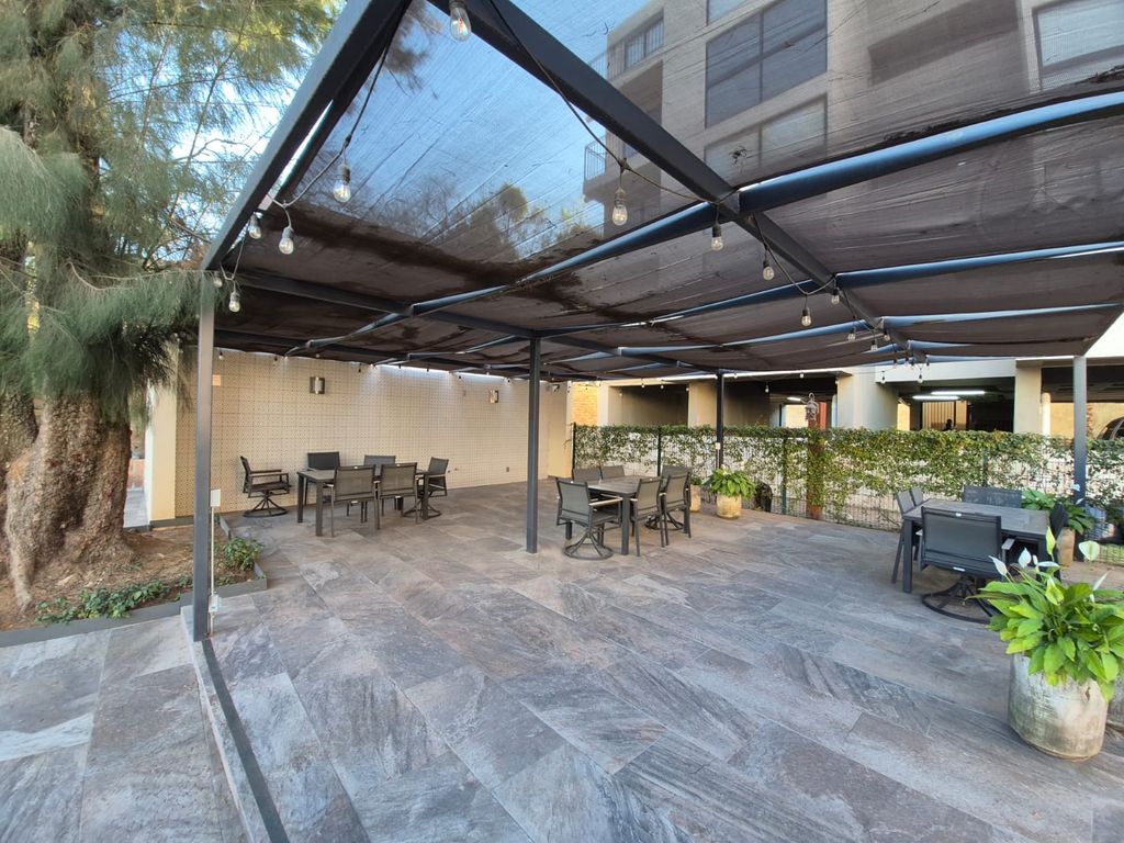 Departamento en 4to nivel y último, cuenta con sala, comedor, cocina integral, dos habitaciones que comparten baño y la principal con balcon, las dos con closets.Amenidades: El edificio cuenta con seguridad biometrica para el ingreso, alberca, terraza, área para mascotas, seguridad 24 /7, totalmente nuevo y equipado.