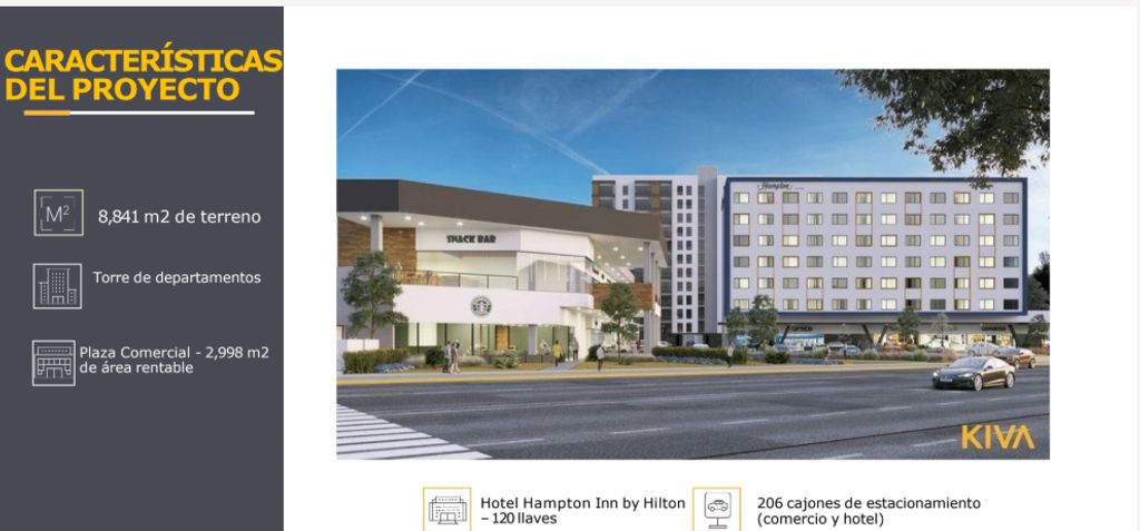 En la plaza, también estará ubicado el hotel Hampton Inn by Hilton, marca galardonada que brinda servicios a viajeros que les importa la calidad y tienen conciencia del valor. Con más de 1900 hoteles en 15 países en todo el mundo, tenemos todo lo que necesitas para un viaje de negocios o esparcimiento. Disfruta de alojamiento de alta calidad, comodidades en la habitación, tarifas competitivas y un servicio cordial. Con comodidades adicionales como WiFi de cortesía y desayuno con opciones frías y calientes incluido. Todo respaldado por la garantía de satisfacción 100% Hampton que refuerza nuestro compromiso de brindar un servicio excelente.