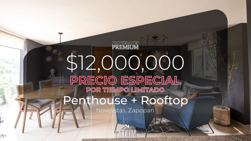 Este penthouse de gran formato con rooftop privado destaca por su amplia superficie total de 365 m², una distribución funcional y una ubicación estratégica dentro de una de las zonas residenciales mejor conectadas de Zapopan.Ubicado en Rinconada de los Novelistas, una zona residencial consolidada de Zapopan, el inmueble cuenta con cercanía inmediata a Plaza Galerías, Costco, Parque Metropolitano y universidades de alto nivel, lo que lo convierte en una opción sólida tanto para vivir como para inversión.
