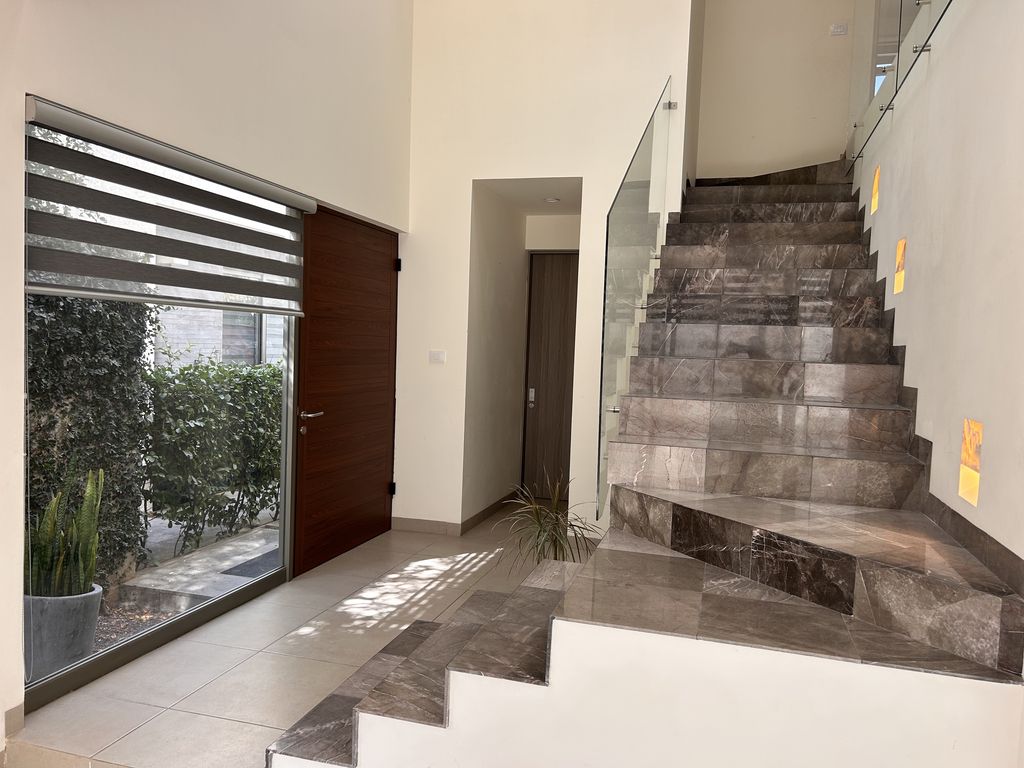 Cuenta con 4 recámaras, cada una con baño completo. La recámara principal dispone de amplio vestidor. Además, tiene un espacio ideal para sala de TV u oficina.
