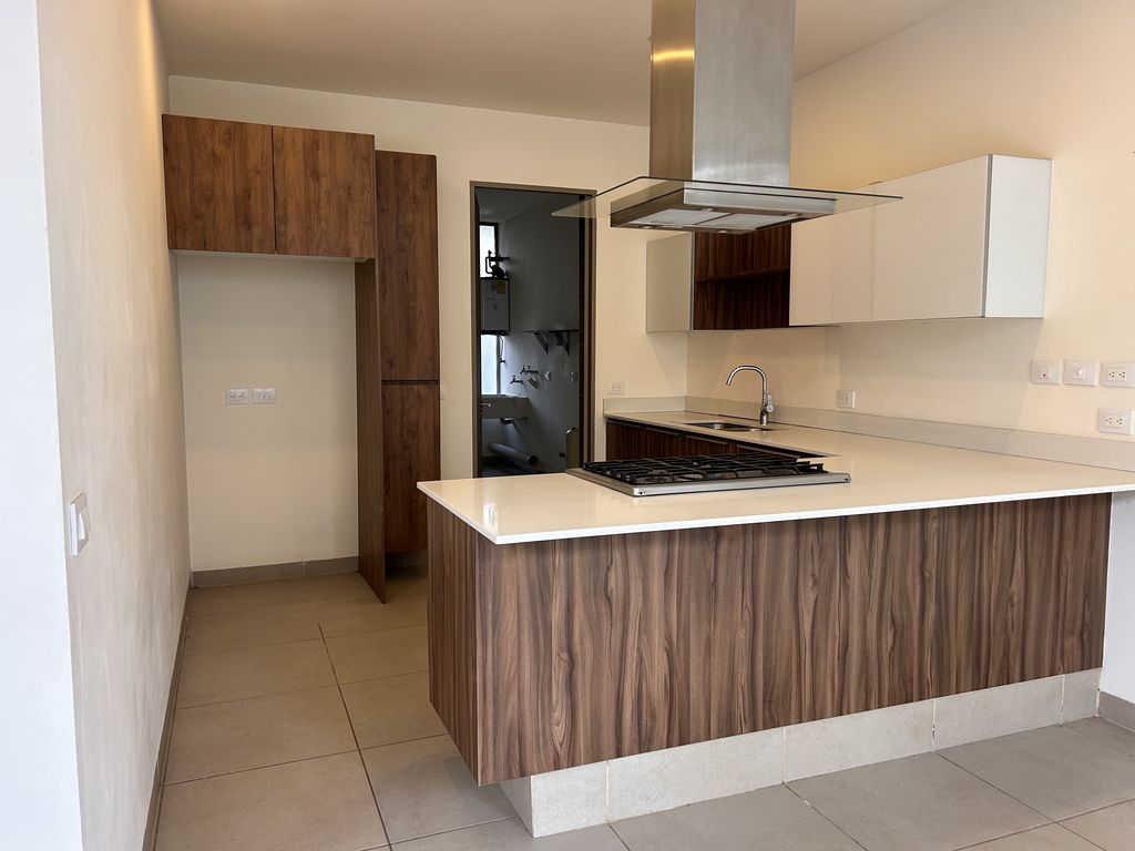 El área social integra sala, comedor y cocina en un concepto abierto, con vista al jardín trasero, creando un ambiente perfecto para convivir.