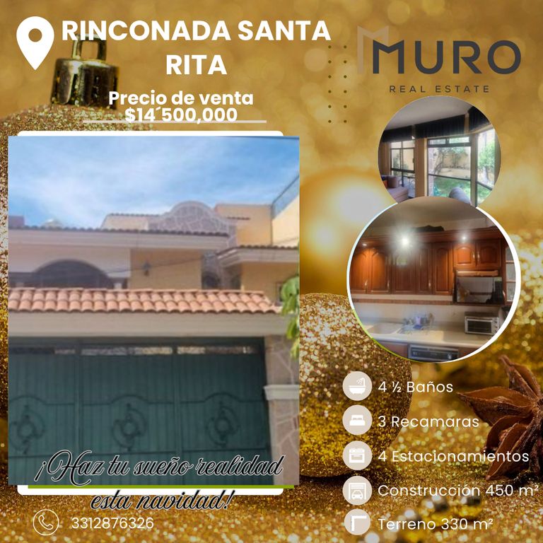Residencia en venta en Rinconada de Santa Rita Antigua, cerca del nuevo consulado, casa estilo mexicano, enfrente de parque.Cuenta con:
