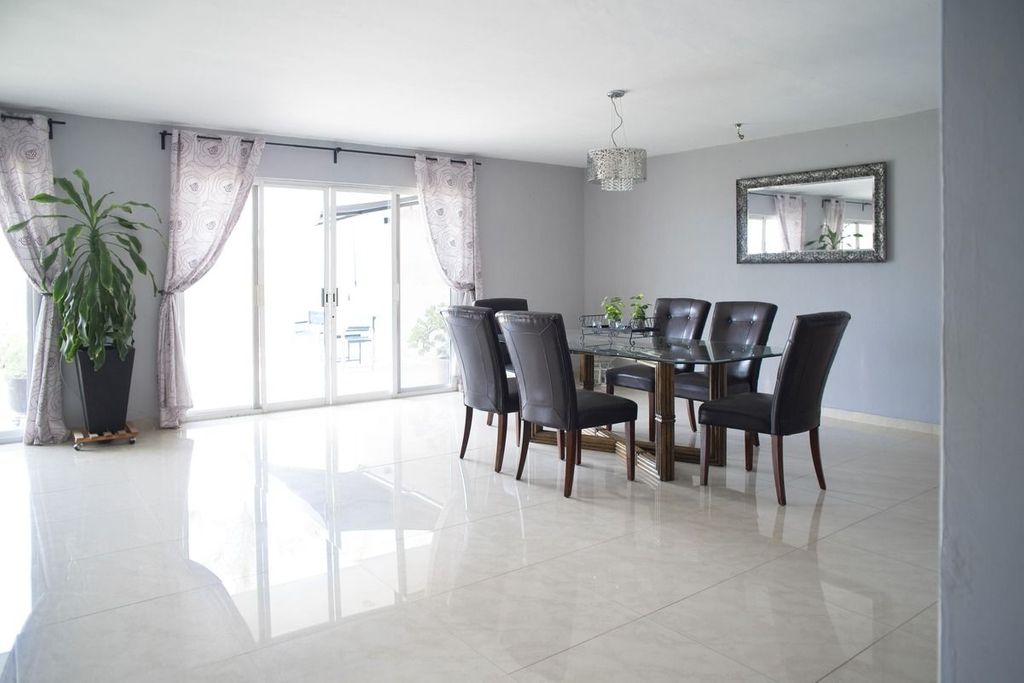 -Planta Baja: Elegante recibidor, medio baño de visitas, espaciosa cocina equipada con desayunador. Área de sala y comedor muy amplio, con acceso a terraza con jardín. Cuenta con un estudio en planta baja.