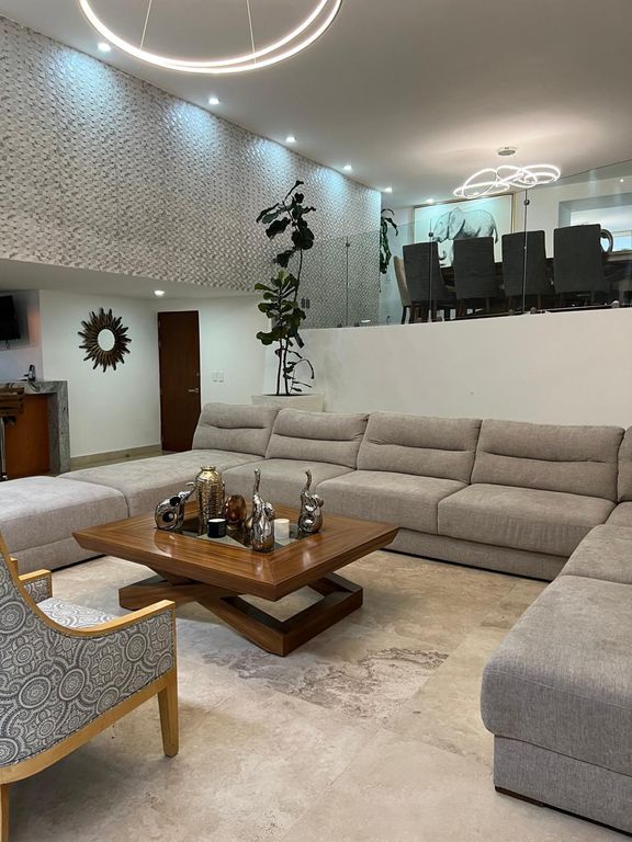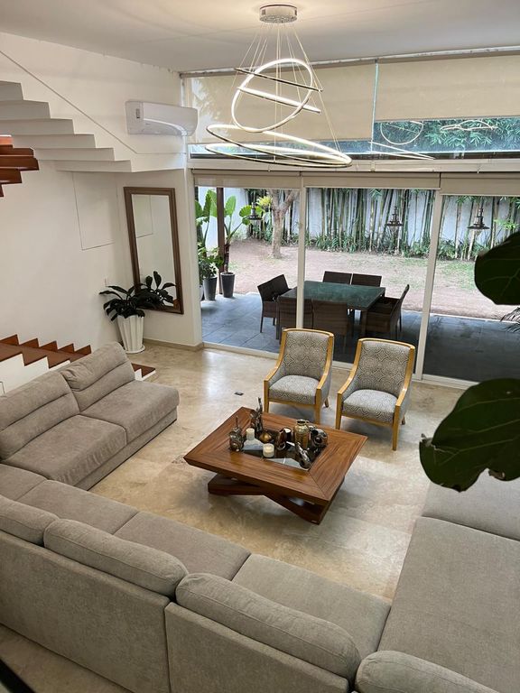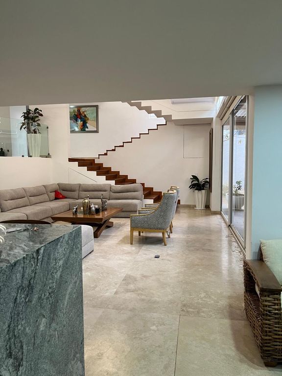 -Amplia sala doble altura con vista al jardin