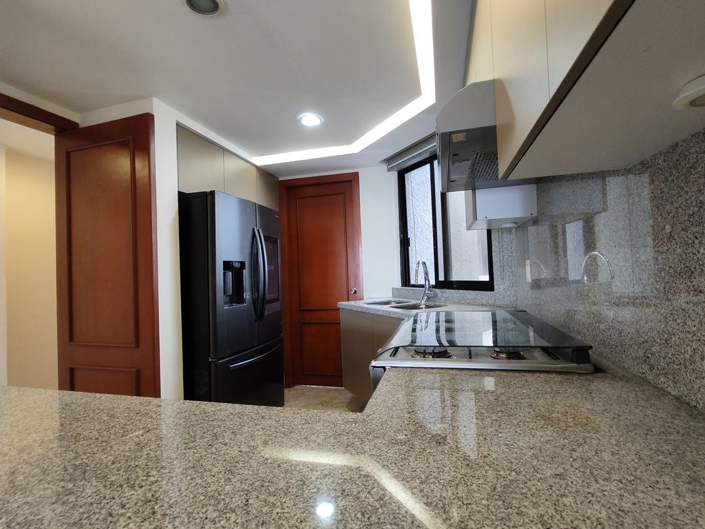 * Cocina integral con acabados de granito y gabinetes modernos.