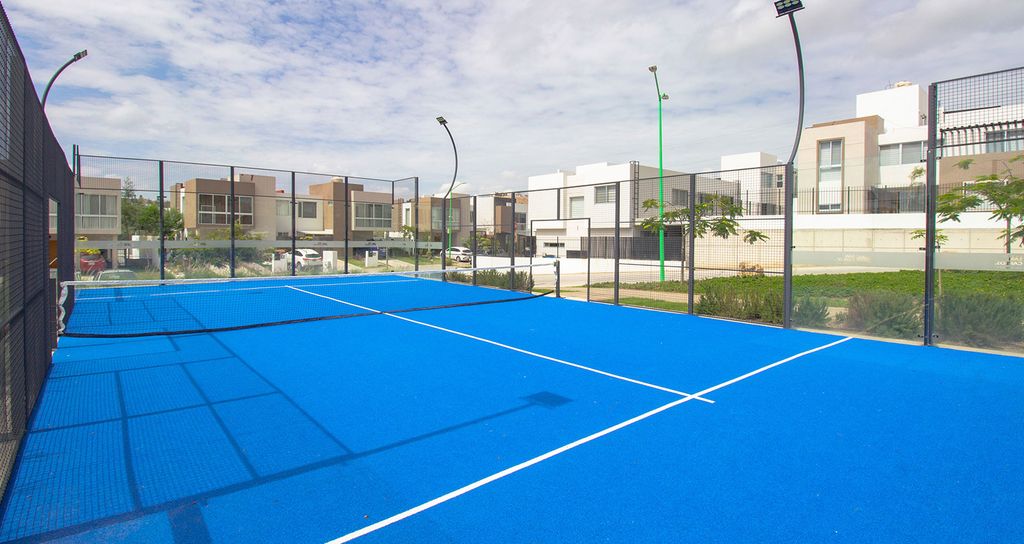 -Cancha de pádel tenis con equipo de estiramiento