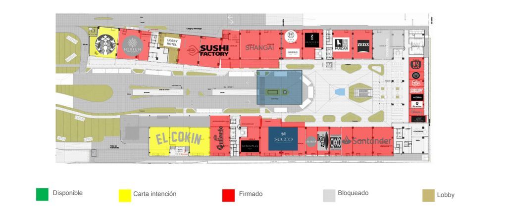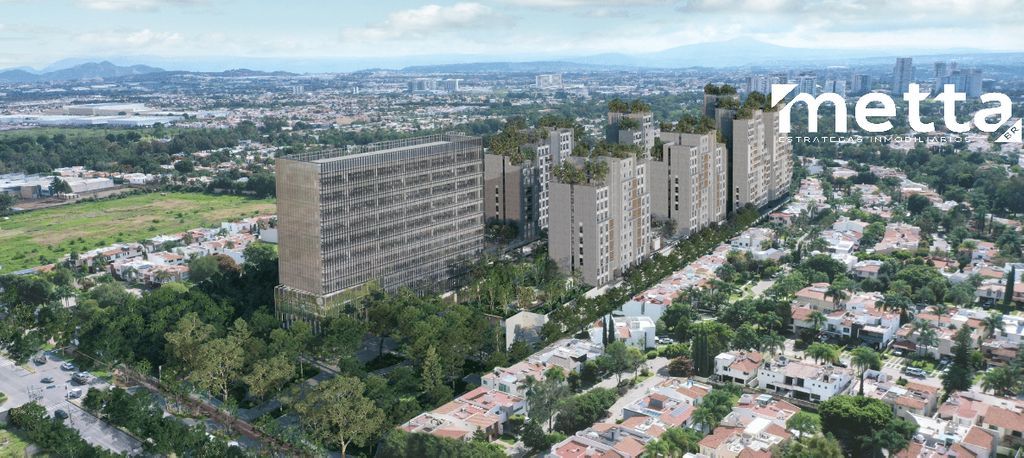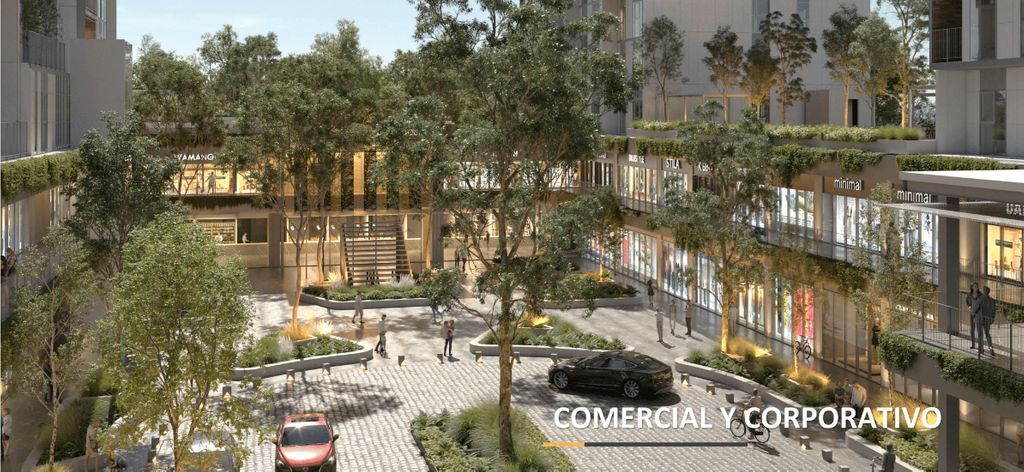 Área comercial amplia + oficinas + torres residenciales.