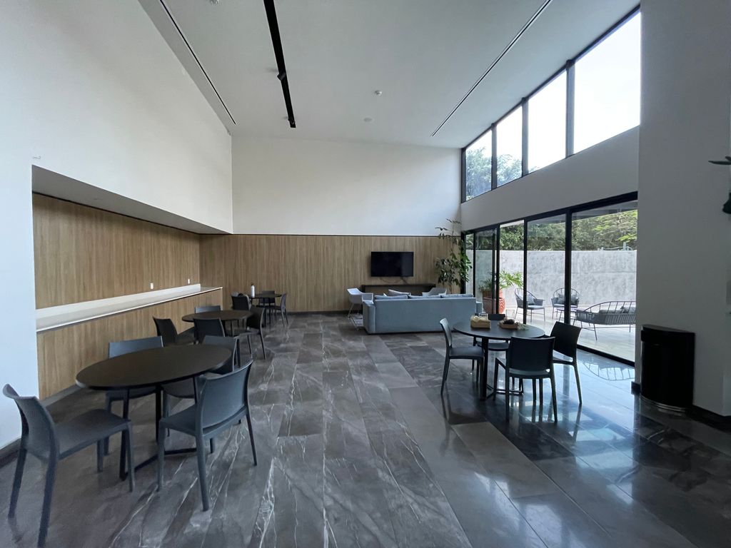 Disfruta de la vista panorámica mientras tomas tu café, ya que la sala comedor y cocina cuentan con espacio abierto y ventanal de piso a techo al balcón,. La cocina integral, te invita a crear tus platillos favoritos. Al caer la tarde, relájate en la terraza en las areas comunes, en el espacio de usos multiples, sauna, gimnasio o en la alberca, mientras los niños se divierten en el área de juegos o en la ludoteca. La seguridad 24 horas y el circuito cerrado te brindan total tranquilidad.
