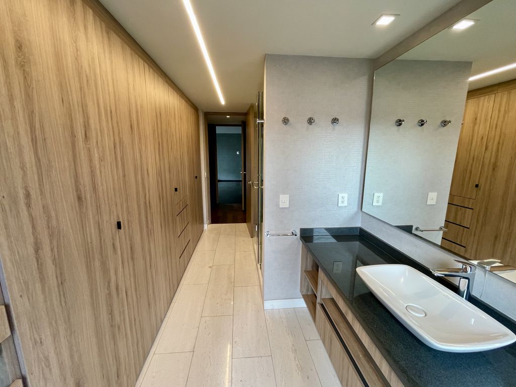 Increíble departamento en Landmark Residence. Ubicado en piso 6 con vista norte cuenta con una distribución de sala, comedor, cocina, terraza, medio baño, 3 recámaras cada una con baño completo y dos de ellas con walk in closet, cuarto de lavado / servicio con baño completo.