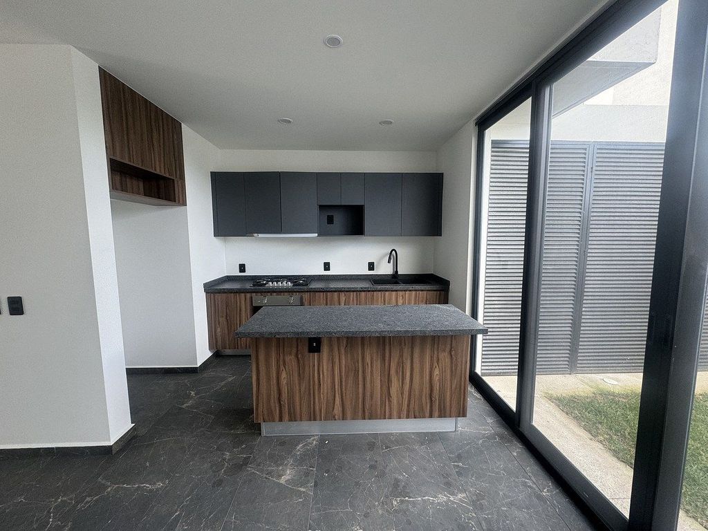 En planta baja se encuentra la cochera para dos vehículos, medio baño para visitas, cocina con isla integrada al área de comedor, jardín y área de lavado.
