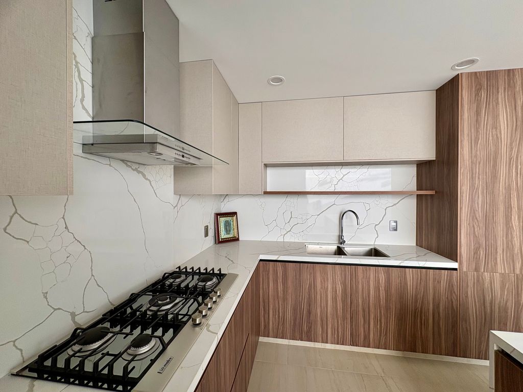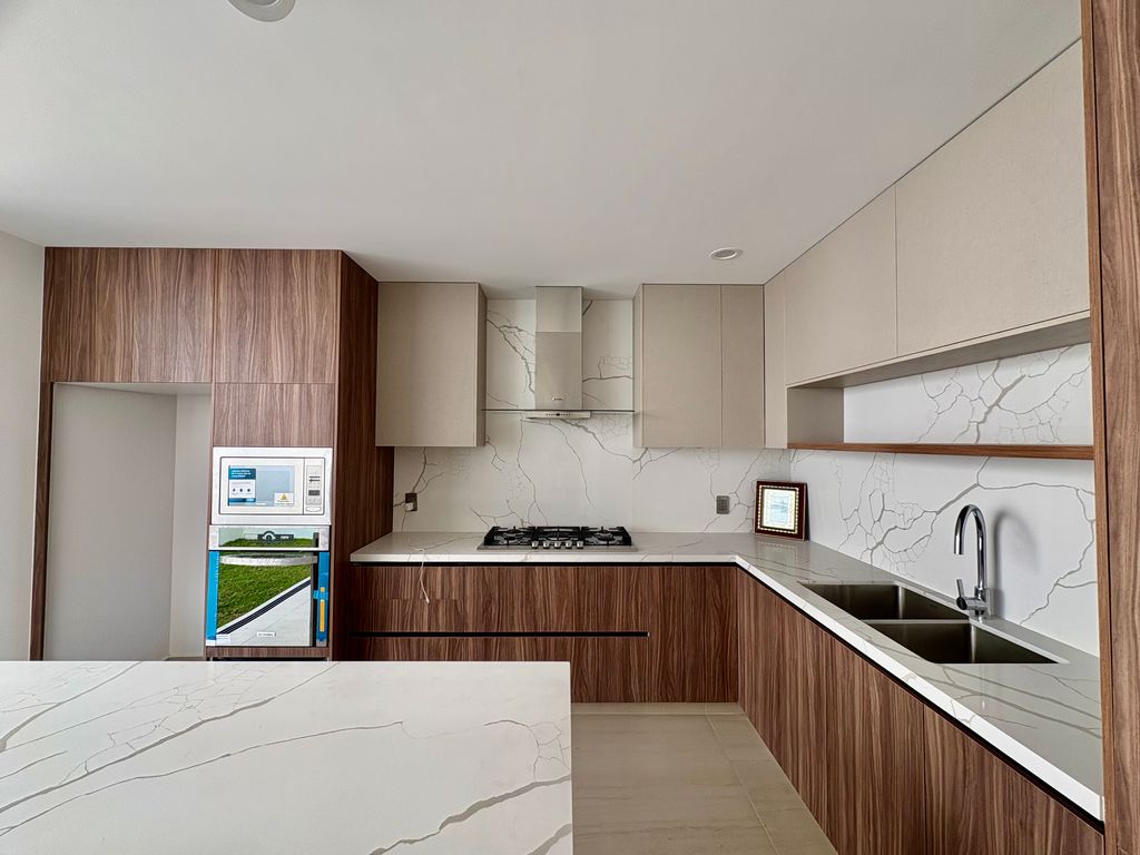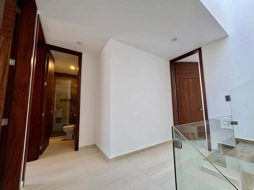 Equipada con acabados de primera calidad, madera en closets y parota, pisos de alto formato, cisterna de 5,000 litros con bomba sumergible, hidroneumático, tinaco, barra de cuarzo en cocina y muebles de baño, aluminio en ventanería, tanque estacionario y preparación para aire acondicionado.