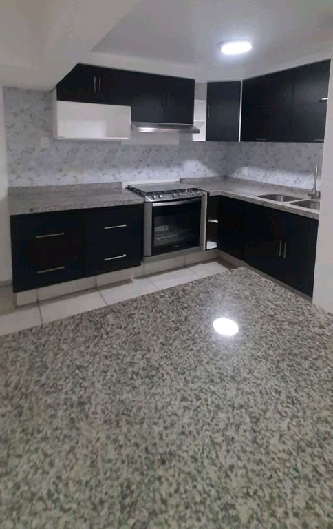 - Planta baja: Amplia sala-comedor, cocina integral con isla y cubierta de granito, baño completo y cochera para un auto.