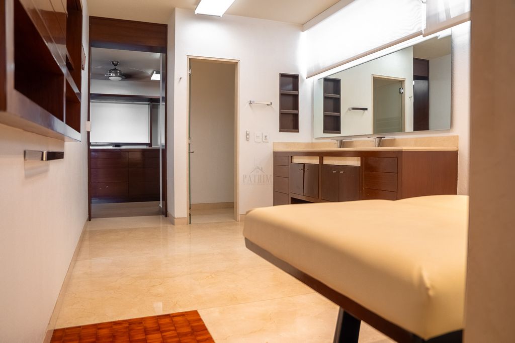 En la zona privada se encuentran tres amplias recámaras en planta alta, cada una con vestidor y baño completo, además de un estar de TV, gimnasio y cuarto de lavado, ofreciendo comodidad y funcionalidad para la vida diaria.