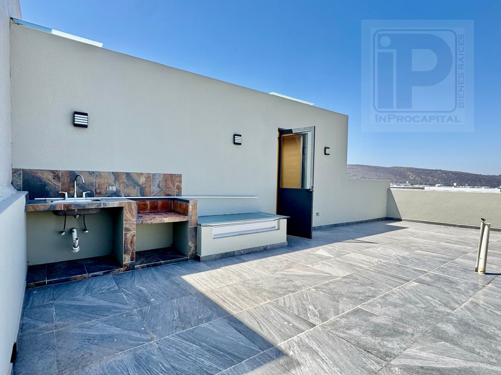 En el tercer nivel se encuentra un rooftop ideal para reuniones, equipado con tarja y espacio suficiente para crear una terraza social.