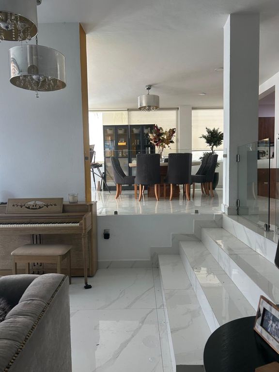 Residencia en zona Andares con terminados de lujo en buen estado de conservación.Doble altura con luz natural. 4 recámaras, 5 baños, cocina integral gourmet, sala de cine privado, amplia terraza con jardín y cochera para 4 autos.