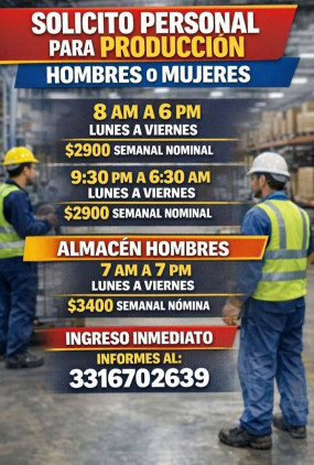 EMPRESA ALUMINERA CON 40 AÑOS DE EXPERIENCIA TE INVITA A FORMAR PARTE DE SU EQUIPO DE TRABAJO COMO:PERSONAL PARA PRODUCCION