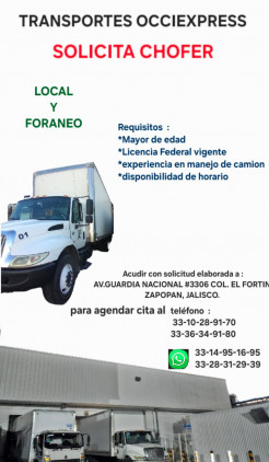 Enviar CV o datos de contacto al: sebastian.occiexpress@outlook.com, 3314951695