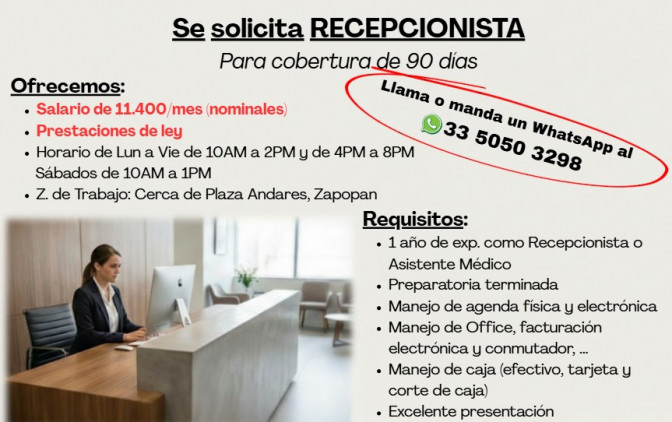 RECEPCIONISTA (para cobertura de 90 días)